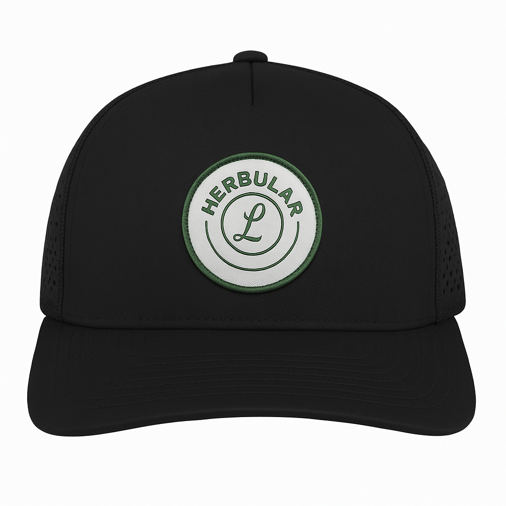 All hats ship with 3D embroidered patch to match the main product image — this image is a AI rendered image but looks identical to the herbalized art piece you receive.